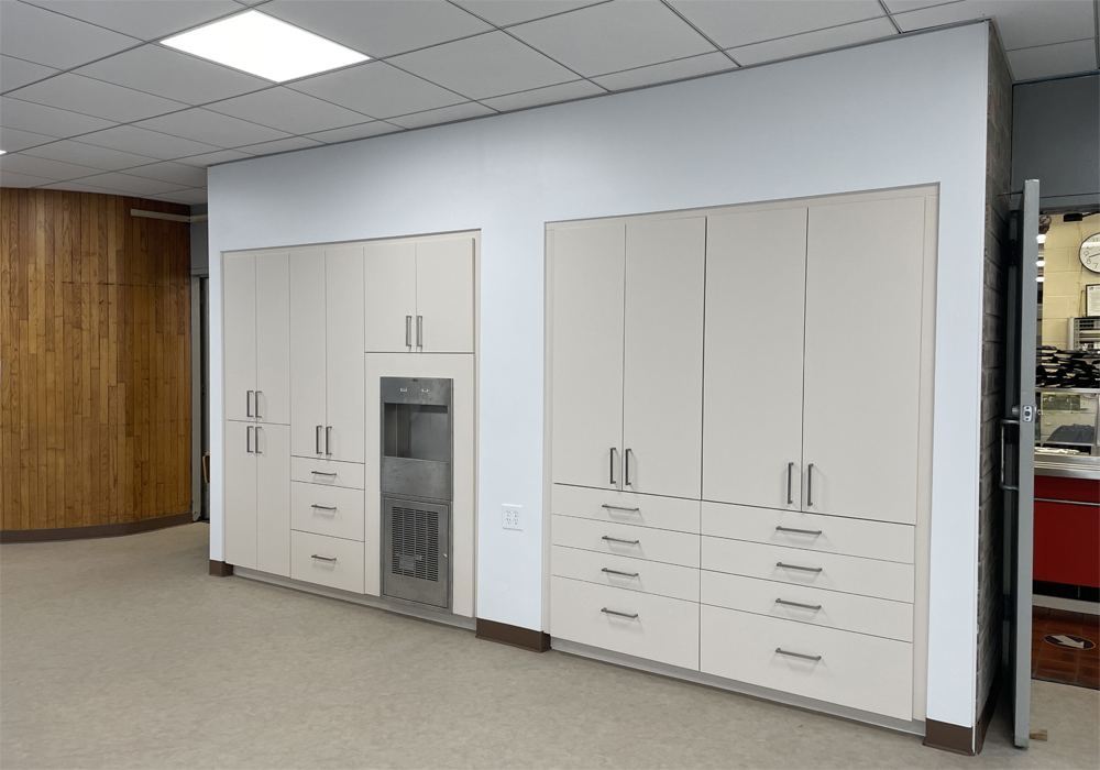 The Jewish Association for the Aging, (JASA), provides Older Adult Centers throughout New York City for adults 60 years and older seeking group activities, special events, company or a hot meal. JASA’s Centers’ mission is to provide activities to encourage seniors stay healthy and engaged. Heim Architect renovated their Center located in Coney Island by upgrading finishes and fixtures. Numerous patterns and color palettes were explored for the flooring design. The selected color palette and pattern reflects the beach location by weaving blue (water) and beige (sand) to create a bold tartan grid. The scope included not only replacing the flooring but also providing a new and efficient pantry and storage area. In 2023, Heim Architect completed the extensive lobby renovation at this location. It was gratifying to return to complete the remainder of the ground floor redesign to provide a comfortable, functional and more contemporary space for seniors to gather.